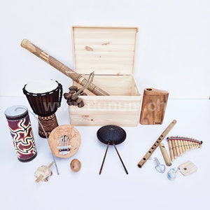 La boîte contient d'une part des instruments de percussion faciles à manier et qui stimulent le sens du rythme des enfants et d'autre part des instruments de musique qui encouragent la créativité.