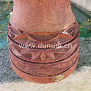 Meisterklasse Djembé aus Burkina Faso. Aushochwertiger, handgefertigter Holzkörper aus einem Stamm Hartholz, kunstvoll bis in kleinste Detail von Handverziert.