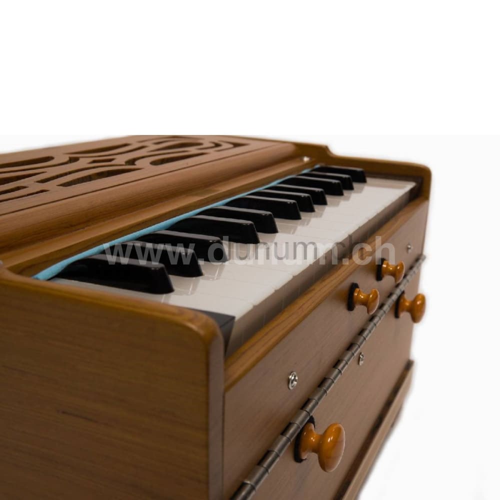 Das Paloma Companion Recon eignet sich perfekt, wenn du ein sehr mobiles Harmonium suchst und dabei Wert auf gleichbleibend hohe Qualität legst. Die 27 Töne von F bis G über 2¼ Oktaven decken den Tonumfang aller gängigen Mantras und Kirtans vollständig ab. Hochwertige Doppelzungen sorgen für eine direkte Ansprache und einen vollen, tragfähigen Klang.